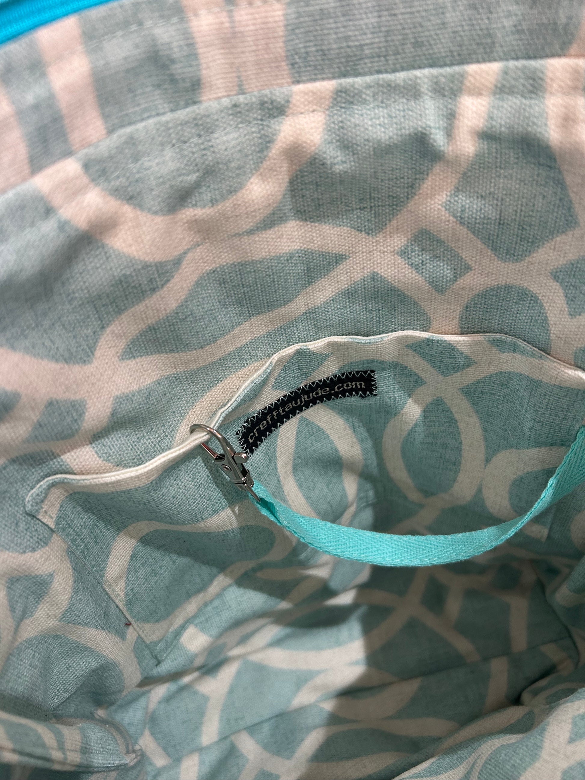 Practical aswell as eye-catching, the bag has zipped external pockets at the front and the back, with a phone size pocket and extra pocket on the inside, along with a handy lobster key clasp for your keys. All your belongings kept secure by the zip closure at the top of the bag.